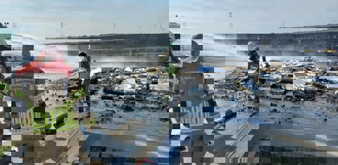 De brandweer heeft de brand helemaal onder controle. Er stonden materialen op het dak in brand. De brandweer is nog even bezig met de laatste werkzaamheden.